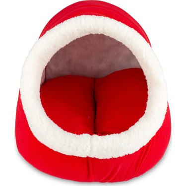 alaska kedi kopek yatagi minderli yumusak pelus evi pet yuvasi kirmizi