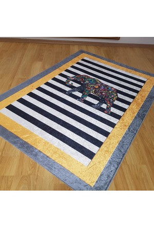 cappio hali fil desenli siyah beyaz cizgili hali dijital baski fiyati yorumlari trendyol